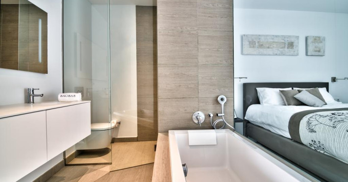 În camere există baie cu cadă sau duș, foehn, articole de toaletă gratuite, precum și halate de baie și papuci. Unele camere au vedere la mare. Fiecare cameră dispune de un aparat pentru preparare cafea sau ceai, cană-fierbător și minibar. Oaspeții pot solicita serviciul de room service pentru a servi masa sau diverse băuturi. Camerele confortabile de la Baobab Suites au pardoseală de gresie/ marmură, aer condiționat, Tv cu canale prin satelit și seif. Oaspeții au acces gratuit la serviciul Wi-fi în camere. Curățenia in cameră se face zilnic. Anumite camere au cadă cu hidromasaj care asigură un plus de confort și răsfăț. Proprietatea oferă camere pentru familie cu o suprafață mai mare și un număr mai mare de paturi față de cele standard.