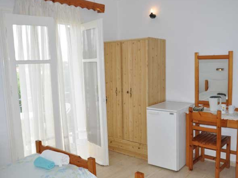 Dotari camere: Studiourile au o capacitate maxima de cazare de 2 persoane si sunt dotate cu aer conditionat (~5EUR/zi), mini frigider, balcon/terasa.