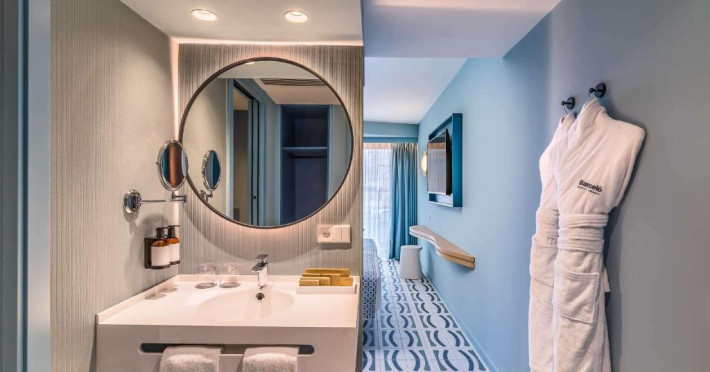 Camerele exterioare au tot confortul modern. Piscina este situată pe acoperiș cu cele mai extraordinare vederi ale zonei inconjurătoare și plajei.