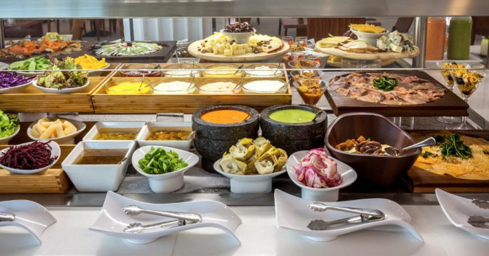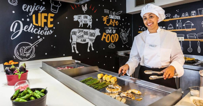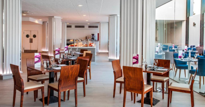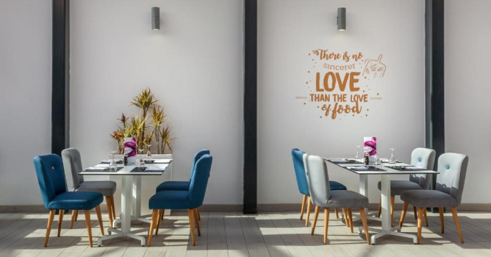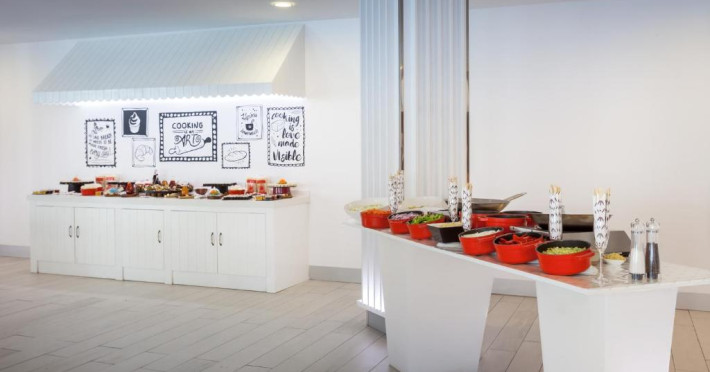 Pe langă restaurantul principal, există un restaurant langă piscină pentru gustări și un alt bar cu divertisment de seară. Hotelul are și un miniclub pentru copii.