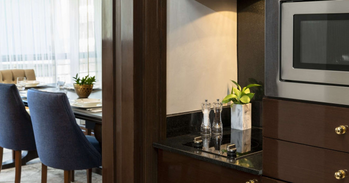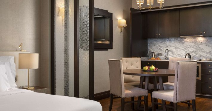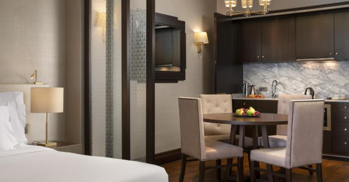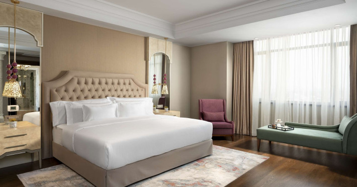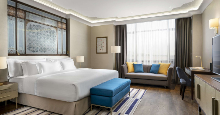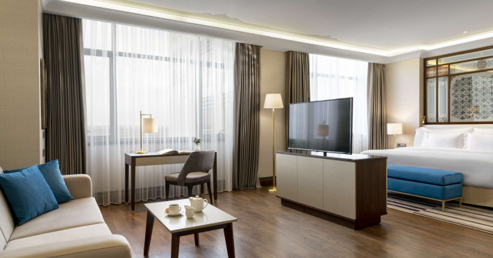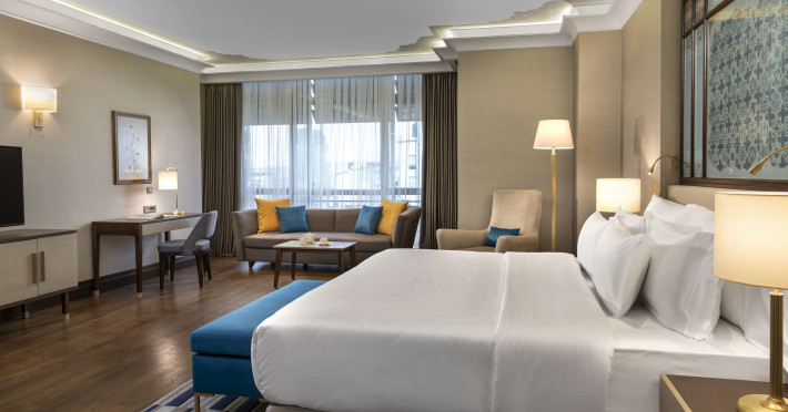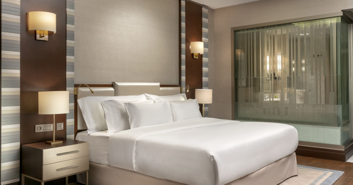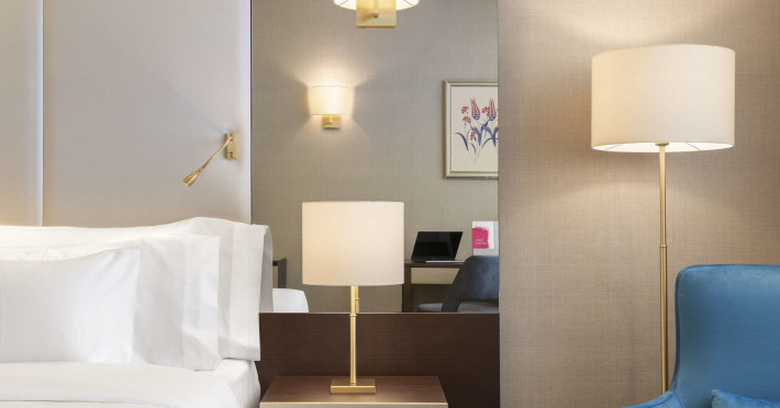 În camere există un aparat de aer condiționat și un sistem de încălzire. Camerele au un pat „King size”. De asemenea, sunt disponibile un seif și un minibar. Echiparea de bază cuprinde de asemenea și un aparat pentru cafea/ceai. Se garantează diverse posibilități de comunicare și divertisment prin echiparea cu un telefon, un televizor, un radio, un ceas deșteptător și WiFi (gratuit). În cameră se găsesc și papuci de casă. În baia dotată cu un duș și o cadă există un uscător de păr și halate de baie. Mai stau la dispoziție și camere adaptate pentru scaun cu rotile, cu baie fără bariere. Locul de cazare oferă camere de nefumători.