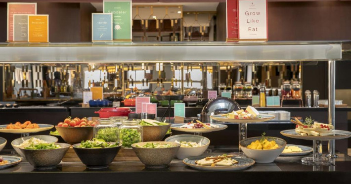 Zona cu restaurante dispune de 2 restaurante și de o sală de mese. Pot fi rezervate diverse mese. Clienții pot alege între demipensiune și pensiune completă. Un mic dejun, un prânz și o cină stau la dispoziție pentru toate poftele.