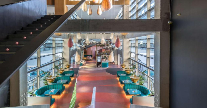 Un element distinctiv al hotelului este toborganul său emblematic care conectează recepția cu zona de lounge - o atracție unică ce reflectă spiritul inovator al proprietății. Oaspeții au la dispoziție și un centru fitness modern, săli de conferințe și o terasă unde pot savura cocktailuri cu priveliști asupra orașului.