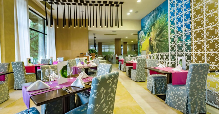 La Barcelo Royal Beach oaspeții au la dispoziție 2 restaurante unde pot savura mâncăruri delicioase, în stil bufet sau à la carte. Bucătăria locală, internațională, mediteraneeană și italiană propun mâncăruri pentru gusturi diverse. Masa poate fi servită atât în interior, cît si în aer liber, pe terasă, în funcție de vreme. Oaspeţii pot avea diverse băuturi răcoritoare sau alcoolice la bar. În cadrul proprietății există și un snack bar care servește băuturi și gustări.
