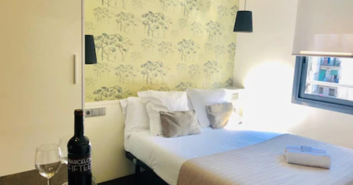Located just 984 feet from Parallel Avenue and metro station, Barcelona Fifteen central Aparthotel offers modern, air-conditioned rooms with free Wi-Fi and flat-screen cable TV. The stylish rooms include a private bathroom, coffee making facilities, and a breakfast bar. The property also has studios with a kitchenette. The property has a rooftop terrace where you can relax. There is also a communal washing machine, drier and microwave, which guests can use for free. There is a wide range of restaurants and bars in the surrounding area and Parallel’s many theaters are also near to the guest house. Las Ramblas Avenue is a 5-minute walk away and Barcelona’s Port Vell just 12 minutes’ walk. Airport buses leave from Plaza Espanya and Plaza Catalunya, which are both 20 minutes’ walk from Barcelona Fifteen Luxury.WiFi is available in all areas and is free of charge. <BR />No parking available. <BR />Pets are not allowed. <BR />Children of all ages are allowed. Children 1 and under stay for free when using an available crib. Children 17 and under stay for free when using an existing bed. You haven't added any extra beds. Any type of extra bed or crib is upon request and needs to be confirmed by management.<BR />Checkin Time: 14:00<BR />Checkout End Time: 11:00<BR /><BR /><b>Hotel important information:</b> Please inform Barcelona Fifteen central Aparthotel of your expected arrival time in advance. You can use the Special Requests box when booking, or contact the property directly using the contact details in your confirmation. This property does not accommodate bachelor(ette) or similar parties. In response to the coronavirus (COVID-19), additional safety and sanitation measures are in effect at this property. Please note that when booking a rate where payment is due before arrival, the property will provide detailed payment instructions, for example a link to a secured payment platform.Located just 984 feet from Parallel Avenue and metro station, Barcelona Fifteen central Aparthotel offers modern, air-conditioned rooms with free Wi-Fi and flat-screen cable TV. The stylish rooms include a private bathroom, coffee making facilities, and a breakfast bar. The property also has studios with a kitchenette. The property has a rooftop terrace where you can relax. There is also a communal washing machine, drier and microwave, which guests can use for free. There is a wide range of restaurants and bars in the surrounding area and Parallel’s many theaters are also near to the guest house. Las Ramblas Avenue is a 5-minute walk away and Barcelona’s Port Vell just 12 minutes’ walk. Airport buses leave from Plaza Espanya and Plaza Catalunya, which are both 20 minutes’ walk from Barcelona Fifteen Luxury.WiFi is available in all areas and is free of charge. <BR />No parking available. <BR />Pets are not allowed. <BR />Children of all ages are allowed. Children 1 and under stay for free when using an available crib. Children 17 and under stay for free when using an existing bed. You haven't added any extra beds. Any type of extra bed or crib is upon request and needs to be confirmed by management.<BR />Checkin Time: 14:00<BR />Checkout End Time: 11:00<BR /><BR /><b>Hotel important information:</b> Please inform Barcelona Fifteen central Aparthotel of your expected arrival time in advance. You can use the Special Requests box when booking, or contact the property directly using the contact details in your confirmation. This property does not accommodate bachelor(ette) or similar parties. In response to the coronavirus (COVID-19), additional safety and sanitation measures are in effect at this property. Please note that when booking a rate where payment is due before arrival, the property will provide detailed payment instructions, for example a link to a secured payment platform.
