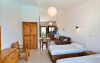 Fiecare cameră include o baie cu duș, dotată cu foehn și articole de toaletă gratuite, și dispune de un balcon cu vedere la mare, piscină sau munte.