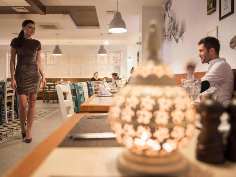Oaspetii pot lua masa la restaurant. Mancăruri speciale fără lactoză și gluten pot fi servite la cerere. Proprietatea oferă, de asemenea, livrări de alimente de bază.