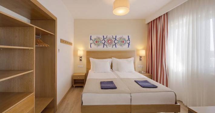 Locație: La doar 600 de metri distanță de plajă, Sunwing Side Beach este situat în inima Mediteranei, oferind o atmosferă liniștită și distractivă. Distante și Transport: • Aeroportul Antalya: 60 km • Centrul orașului Antalya: 8 km • Side: 2,7 km • Transport disponibil prin autobuz, taxi și minibus către Antalya, Side, Manavgat, Alanya Facilități Hotel: • Opțiuni variate de masă, inclusiv mic dejun, prânz și cină în restaurante și baruri diversificate • Piscine exterioare și interioare, cu facilități pentru copii și tobogane • Plajă privată la 600 de metri distanță de hotel • Centru Spa cu diverse tratamente • Activități pentru copii și club pentru cei mici • Facilități sportive, inclusiv terenuri de tenis și activități de apă • Diverse opțiuni de divertisment, inclusiv baruri și spectacole seara Facilități Camere: • Camere tip suite cu 1 dormitor și bucătărie, balcon sau terasă, în jur de 40 m² • Capacitate maximă: 2 adulți + 2 copii sau 3 adulți + 1 copil • Dotări: TV, telefon, seif gratuit, acces WiFi, prosoape de plajă, facilități pentru cafea și ceai, curățenie zilnică • Alte tipuri de camere disponibile, inclusiv cu vedere la grădină sau la mare Restaurante și Baruri: • Bufet deschis pentru micul dejun, prânz și cină, cu opțiuni variate de bucătării din întreaga lume • Restaurante A la Carte cu specific turcesc și grill • Baruri pentru diverse băuturi și gustări, inclusiv un bar pe plajă și un bar sportiv Facilități pentru Copii: • Club pentru copii (3-7 ani) cu program specific • Echipamente și servicii gratuite pentru copii mici prin programul Bary Star, inclusiv cărucioare, pătuțuri, scaune de masă etc. Alte Servicii: • Concept de Lună de Miere cu facilități speciale la check-in • Servicii gratuite: seif în cameră, șezlonguri și umbrele la piscină și plajă, club pentru copii, animație zilnică, sală de fitness, hamam • Servicii cu plată: închiriere mașini, servicii medicale, masaje, sporturi nautice etc.Info