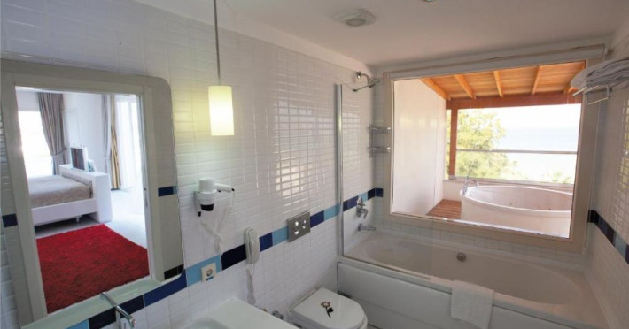 Camerele au vedere la munte sau la mare si sunt dotate cu baie cu cada sau dus, uscător de par, TV satelit, telefon direct, seif, mini bar, aer conditionat individual, balcon, mocheta sau gresie in camere.