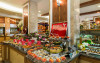 produse lactate, mezeluri, cereale, legume proaspete, gem/ miere, produse de patiserie, fructe, apa plata/ minerala, 3 tipuri de suc natural, cafea si ceai.