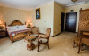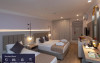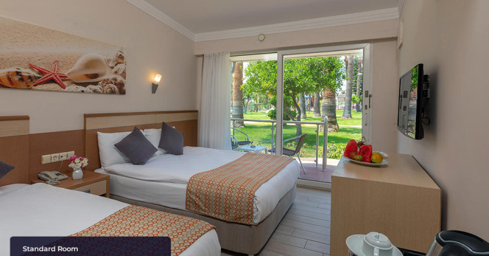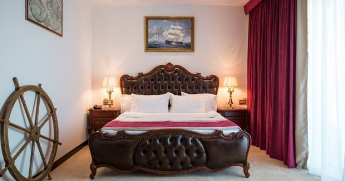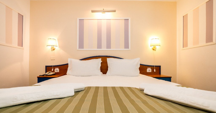 Camerele duble deluxe standard/ vedere mare au o suprafata de 33 mp + 12 mp balcon cu pat matrimonial cu dimensiunea de 180x200 cm.Permite acomodarea: minim 1 adult/ maxim 2 adulti.Camerele sunt la etajul 5, au internet Wi-fi, telefon, smart TV/TV LCD prin cablu, birou de lucru, seif, minibar,mocheta, climatizare, sisteme de alarma in caz de incendiu, detectoare de fum, jacuzzi cu hidromasaj, TV si radio rezistent la apa, priza modulara, oglinda cosmetica, uscator de par, set igiena, papuci si halat de baie.