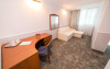 Camerele Single au o suprafata de 15 mp cu vedere spre parcare/ gradina interioara, dispun de 1 pat matrimonial cu dimensiunea de 140 x200 cm. Permite acomodarea : minim 1 adult/ maxim 1 adult si 1 copil sub 5.99 ani.Camerele au internet Wi-fi, telefon, smart TV/TV LCD prin cablu, birou de lucru, seif, minibar,mocheta, climatizare, sisteme de alarma in caz de incendiu, detectoare de fum, baie cu cabina de dus,priza, oglinda cosmetica, uscator de par, set igiena, papuci si halat de baie.