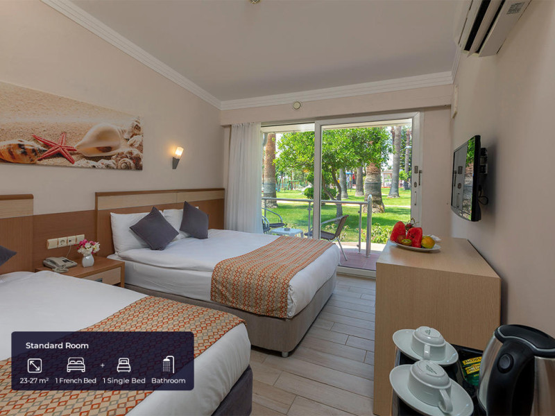 Camerele duble parter/ standard/ vedere mare au o suprafata de 22 mp cu vedere spre parcare/ gradina interioara, dispun de 1 pat matrimonial cu dimensiunea de 180 x200 cm sau twin cu dimensiunea de 90x200 cm. Permite acomodarea : minim 2 adulti/ maxim 2 adulti si 1 copil sub 5.99 ani.Camerele au internet Wi-fi, telefon, smart TV/TV LCD prin cablu, birou de lucru, seif, minibar,mocheta, climatizare, sisteme de alarma in caz de incendiu, detectoare de fum, baie cu cabina de dus,priza, oglinda cosmetica, uscator de par, set igiena, papuci si halat de baie.