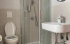 Toate camerele au pardoseală din gresie, dulap și balcon. Baia privată este dotată cu duș sau cadă.