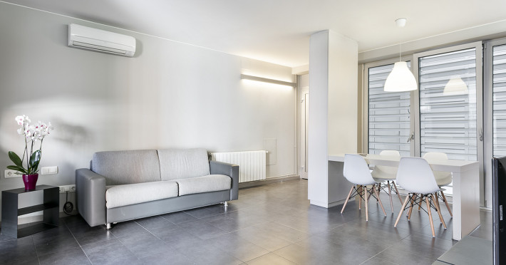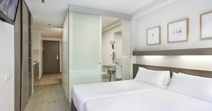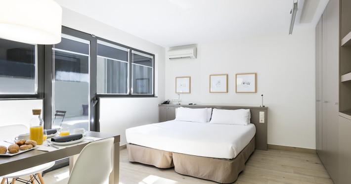 The air-conditioned hotel features 60 studios and a spacious lobby with 24-hour reception and check-out service, lift access and safe. The hotel has a communal lounge, TV room, free WLAN Internet access, laundry facilities and breakfast room. The hotels conference facilities feature video conferencing, fax, meeting rooms and catering for groups (please inquire at reception). For an extra charge there is parking for those arriving by car..This family-friendly city hotel is located on the Gran VÃa de las Corts Catalanas and the Calle San Fructuoso, which is parallel to the main avenue (and represents the dividing-line between a completely urban environment and the spurs of the Montjuïc hill). Just a few minutes away from the Plaza de España, it is very close to the Eixample. There is a shopping center called Arenas opened in March 2011 5 minutes walking. The surrounding area is a hive of activity, including business locations, the Barcelona Trade Fair, industrial and commercial companies, hotels, restaurants and governmental administration. Barcelona International Airport lies some 11 km from the hotel..The studios have a double bedroom (the majority of them also have a small lounge with a chaise longue, which can act as a bed for a third person). There is also a fitted kitchen equipped with refrigerator, ceramic hob cooker, microwave and extractor fan, as well as a bathroom with shower and hairdryer. Other in-room amenities include a direct dial telephone, satellite TV, free Wifi, safe with charge, a large desk and individually regulated air conditioning and heating units. Kitchenware with extra charge..The aparthotel offer breakfast buffet..The hotel houses a sauna and gym with extra cost..American Express, MasterCard, Maestro and VISA are all accepted as methods of payment.Datorita dinamicitatii domeniului disponibilitatea ofertelor se modifica de la un moment la altul. De aceea ofertele sunt valabile in limita locurilor disponibile. Agentia nu este responsabila pentru eventualele neconcordante care pot aparea intre informatiile privind tarifele si alte detalii din site si informatiile primite in agentie. In aceste cazuri vor avea prioritate, intotdeauna, informatiile primite in agentie.