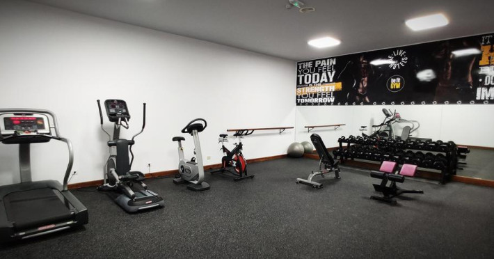 O sală de fitness cu echipamente necesare pentru o gamă variată de exerciții fizice este la dispoziția celor interesați.
