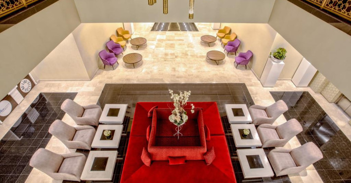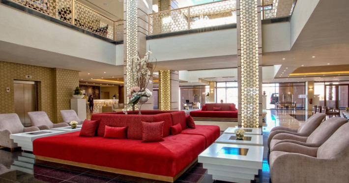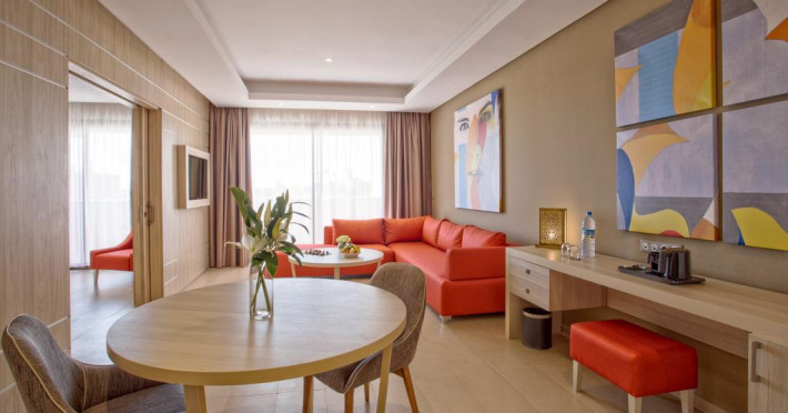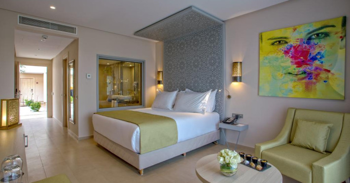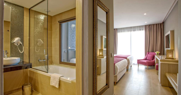 The hotel Be Live Collection Marrakech Adults Only is equipped with a 24h reception, Wi-Fi, parking spaces as well as a TV lounge with satellite TV. In the outdoor area you will find a garden as well as a pool (open all year), where sun loungers and pool towels are available for free. Furthermore, you can relax outdoors on the sun terrace. Inside the hotel you can use an indoor pool. For your entertainment, the hotel offers a cinema. You can store your luggage in the hotel's storage room. To clean your clothes there is a laundry service. For your comfort there is a concierge service. Catering Your physical well-being is catered for by a restaurant with terrace and the pool bar. The drinks menu of the hotel includes soft drinks and wine. Sports & Leisure During your holiday you can take part in aerobics courses. In addition to a tennis court there is also a tennis school. A sauna awaits you in the wellness area. The hotel also offers massages. For the entertainment of adults live music is presented on certain days.The hotel Be Live Collection Marrakech Adults Only is equipped with a 24h reception, Wi-Fi, parking spaces as well as a TV lounge with satellite TV. In the outdoor area you will find a garden as well as a pool (open all year), where sun loungers and pool towels are available for free. Furthermore, you can relax outdoors on the sun terrace. Inside the hotel you can use an indoor pool. For your entertainment, the hotel offers a cinema. You can store your luggage in the hotel's storage room. To clean your clothes there is a laundry service. For your comfort there is a concierge service. Catering Your physical well-being is catered for by a restaurant with terrace and the pool bar. The drinks menu of the hotel includes soft drinks and wine. Sports & Leisure During your holiday you can take part in aerobics courses. In addition to a tennis court there is also a tennis school. A sauna awaits you in the wellness area. The hotel also offers massages. For the entertainment of adults live music is presented on certain days.