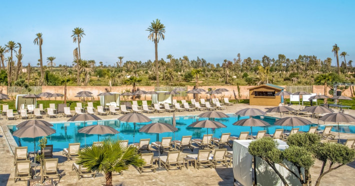 Located in the heart of Marrakech Palmeraie, roughly 6 km from the Central Marrakech. The Resort occupy a remarkable position in perfect harmony with the surroundings and offer a panoramic view on the Atlas mountains. This hotel provides various restaurants: Buffet restaurant, Morroccan a la carte Restaurant and Snack Bar, and other beverages services. The Hotel offers a diverse set of leisure and entertainment amenities on site, icluding swimming pools, a conference and entertainment centre, shops offering home-grown products, outdoor sports area, Andalousian garden and parking. Additionally, the relaxing and magic SPA center with inddor heated pool, and fitness centre. A dreamlike Resort specially designed for adults, offers accomodation in elegant rooms with all inclusive formula.Located in the heart of Marrakech Palmeraie, roughly 6 km from the Central Marrakech. The Resort occupy a remarkable position in perfect harmony with the surroundings and offer a panoramic view on the Atlas mountains. This hotel provides various restaurants: Buffet restaurant, Morroccan a la carte Restaurant and Snack Bar, and other beverages services. The Hotel offers a diverse set of leisure and entertainment amenities on site, icluding swimming pools, a conference and entertainment centre, shops offering home-grown products, outdoor sports area, Andalousian garden and parking. Additionally, the relaxing and magic SPA center with inddor heated pool, and fitness centre. A dreamlike Resort specially designed for adults, offers accomodation in elegant rooms with all inclusive formula.