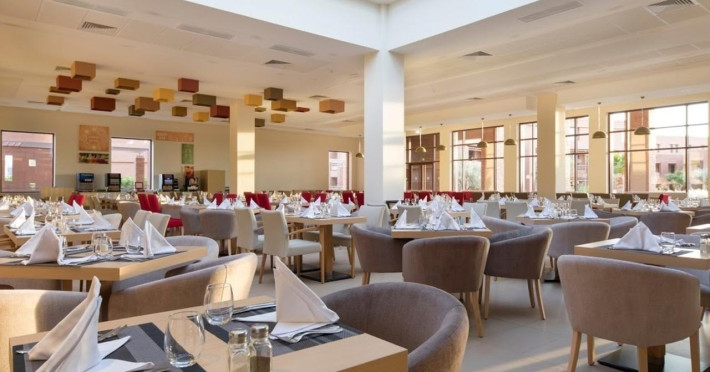 This is an elegant 4 star hotel with a family-friendly atmosphere, providing our guests a pleasant and exotic stay in the heart of the Palmeraie of Marrakech. Just 6 km far from the historic center of Marrakech, our hotel leaves no one indifferent. The 167 modern and comfortable rooms are divided into single, double rooms, duplex and suites with views on the pool, on the Atlas Mountain or on the Palmeraie. The Hotel offers a large choice of food and beverages services with one international buffet restaurant, an Andalusian a la carte restaurant, a snack grill next to the pool and a luxury lobby bar. The hotel provides a large range of facilities on site , including 1 swimming pool, 1 kid's splash pool, Miniclub, fitness center, conference and indoor entertainment room, open air theatre, shops, parking and an educational farm for kids.This is an elegant 4 star hotel with a family-friendly atmosphere, providing our guests a pleasant and exotic stay in the heart of the Palmeraie of Marrakech. Just 6 km far from the historic center of Marrakech, our hotel leaves no one indifferent. The 167 modern and comfortable rooms are divided into single, double rooms, duplex and suites with views on the pool, on the Atlas Mountain or on the Palmeraie. The Hotel offers a large choice of food and beverages services with one international buffet restaurant, an Andalusian a la carte restaurant, a snack grill next to the pool and a luxury lobby bar. The hotel provides a large range of facilities on site , including 1 swimming pool, 1 kid's splash pool, Miniclub, fitness center, conference and indoor entertainment room, open air theatre, shops, parking and an educational farm for kids.