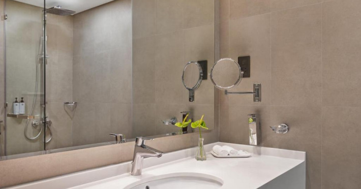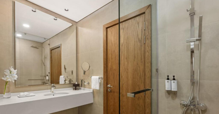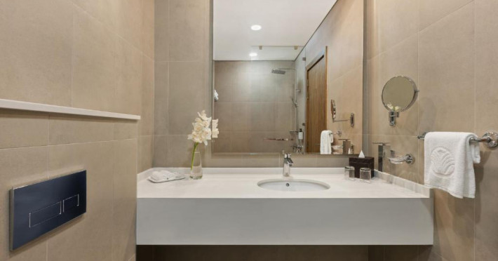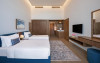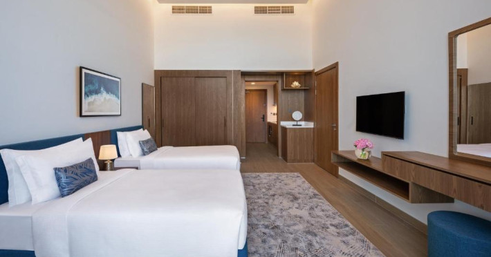 Acest hotel pune la dispoziție camere care includ aer condiționat, un birou, un ibric electric, un frigider, un cuptor cu microunde, o cutie de valori, un televizor cu ecran plat și o baie proprie cu bideu. Baia proprie oferă un duș, articole de toaletă gratuite și un uscător de păr. La Beach Bay Hotel Mirfa, toate camerele includ lenjerie de pat și prosoape.