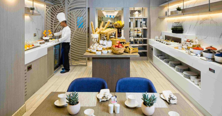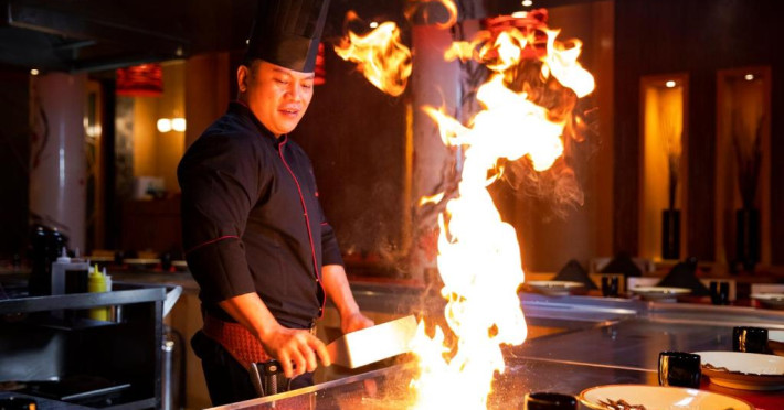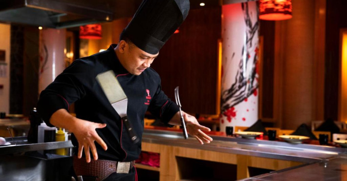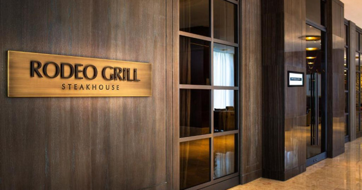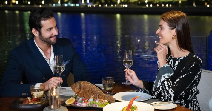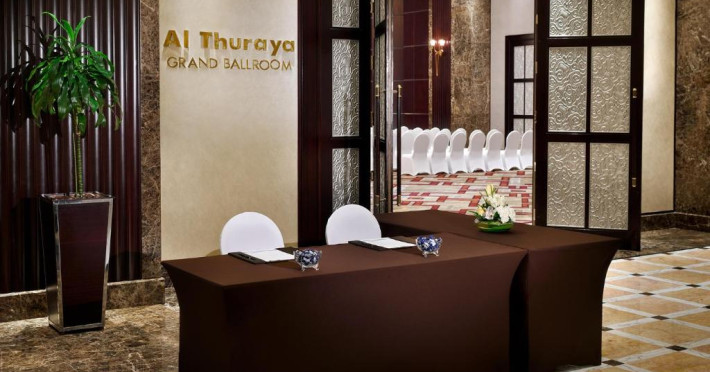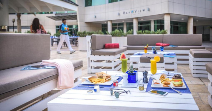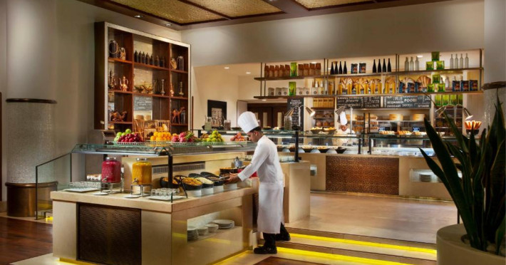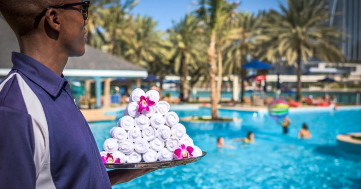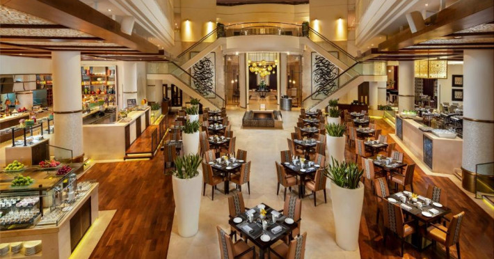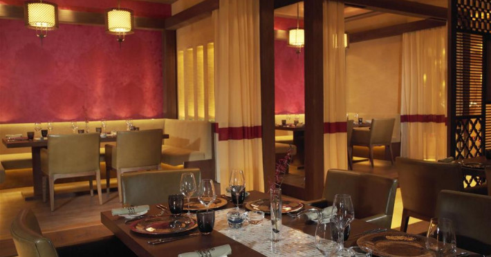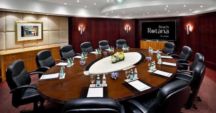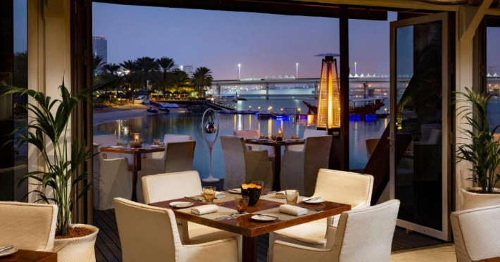 Avand facilități comune cu hotelul de 5 stele Beach Rotana, proprietatea oferă 10 locuri de luat masa diferite, care servesc o gamă largă de preparat internațional și o selecție excelentă de băuturi.