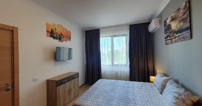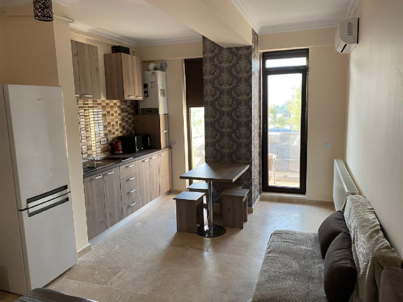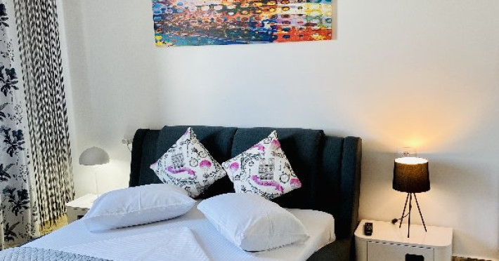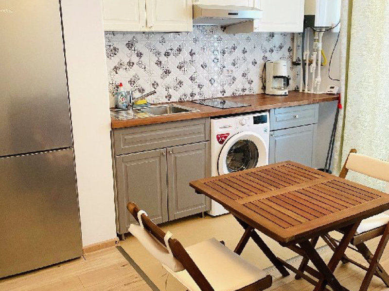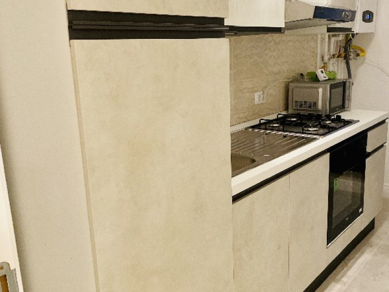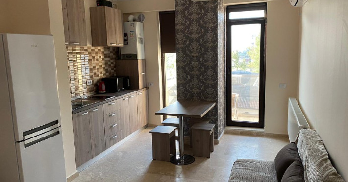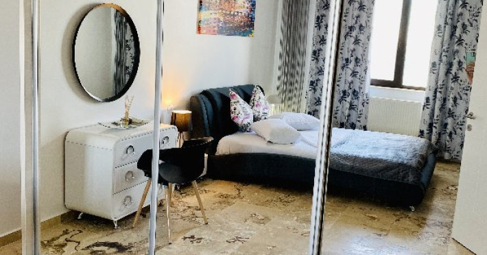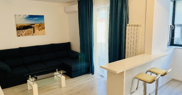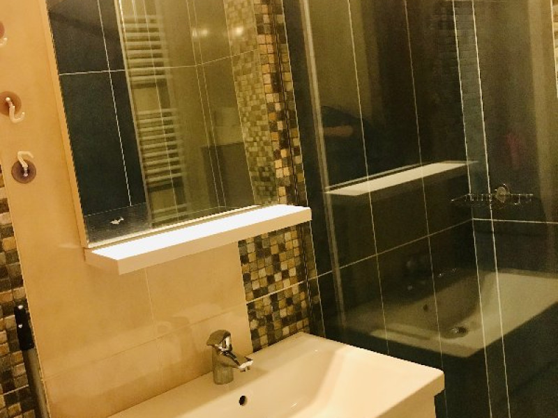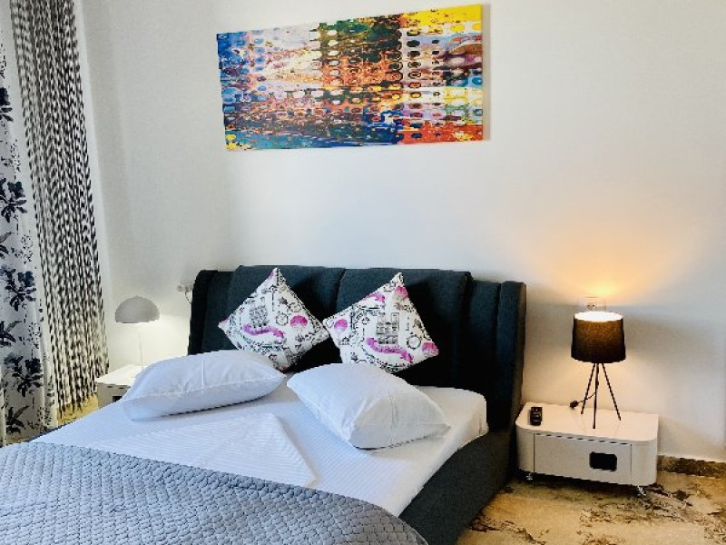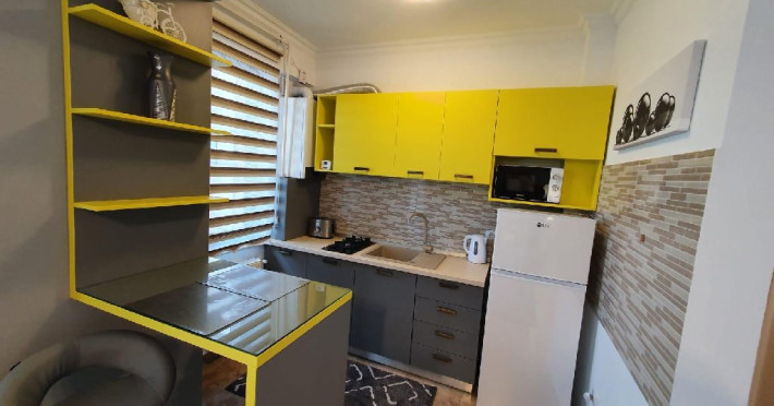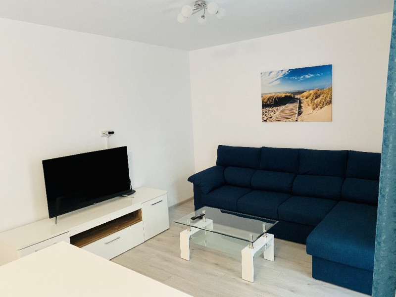Garsoniere 1 camera cu pat matrimonial plus canapea extensibila , bucatarie complet mobilata si utilata, baie dotata cu cabina de dus. Garsoniera poate acomoda 4 adulti sau 2 adulti plus 2 copii .