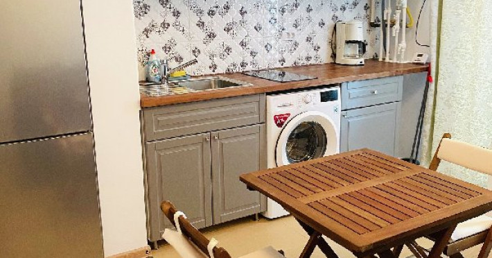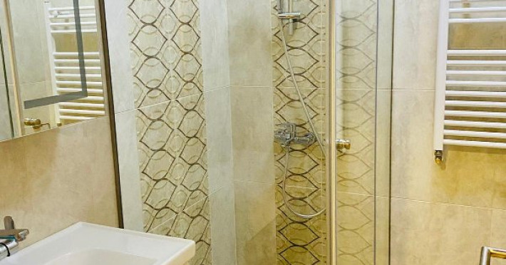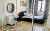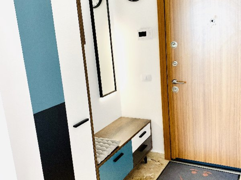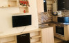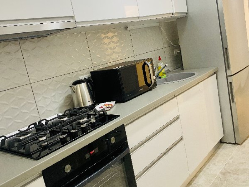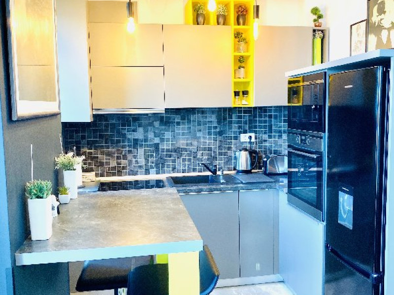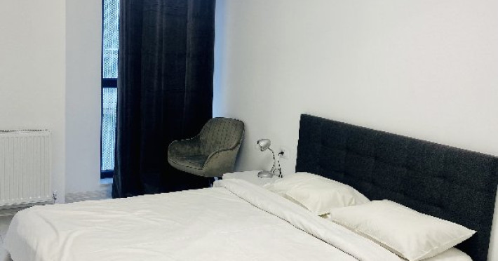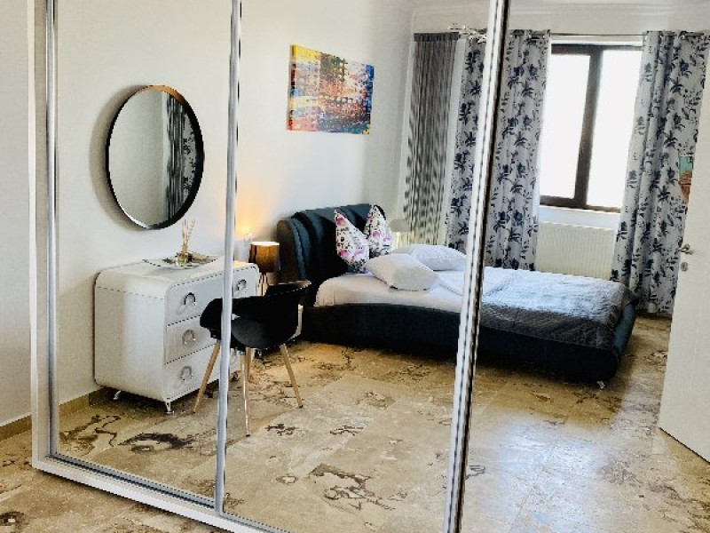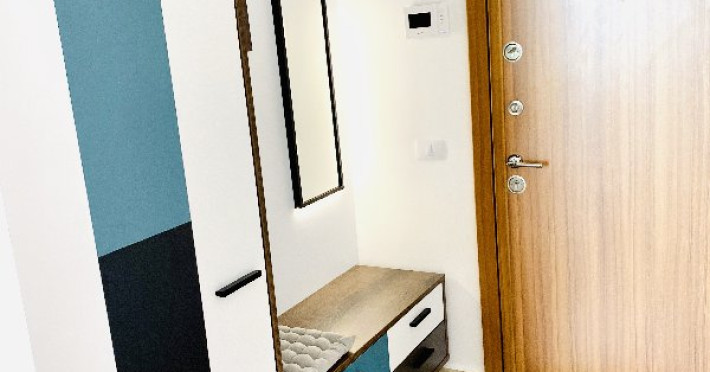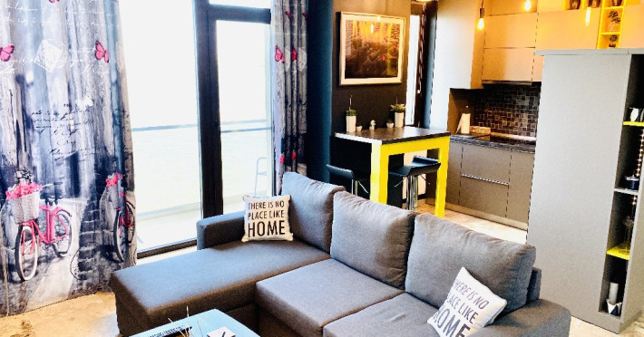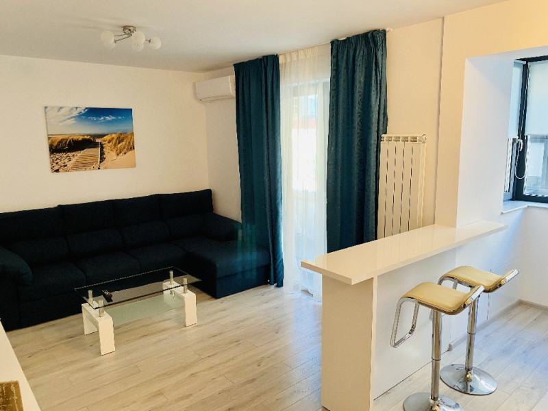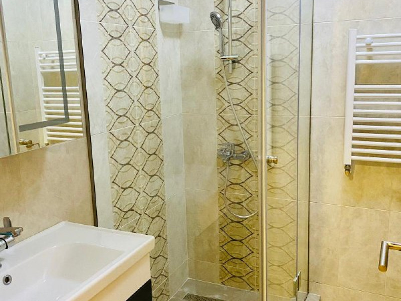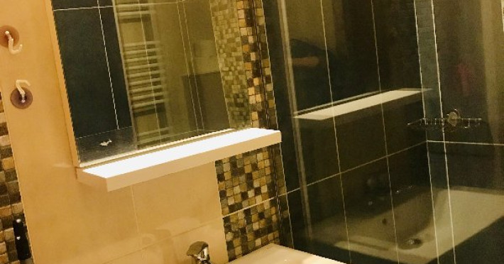 Garsoniere 1 camera cu pat matrimonial plus canapea extensibila , bucatarie complet mobilata si utilata, baie dotata cu cabina de dus. Garsoniera poate acomoda 4 adulti sau 2 adulti plus 2 copii .