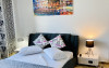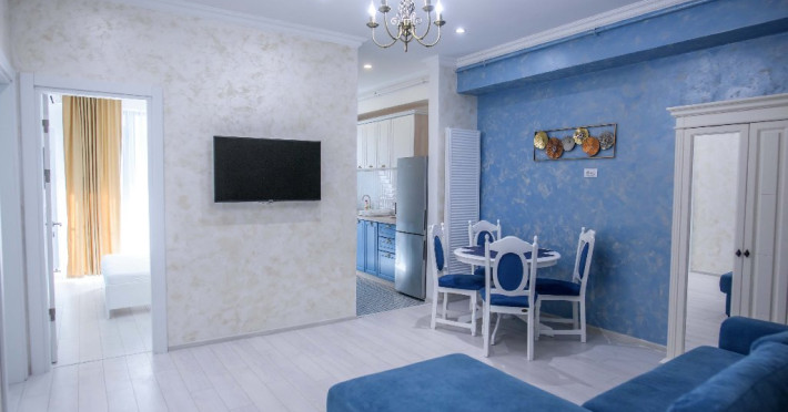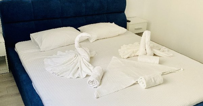 Apartamentele sunt alcatuite din 2 camere: living, si dormitoar cu pat matrimonial , bucatarie complet mobilata si utilata, baie dotata cu cabina de dus, terasa . Dormitorul are pat dublu matrimonial , iar living-ul detine o canapea extensibila. In living pot dormi minim 2 turisti. Toate spatiile sunt generoase, amenajate ultramodern.