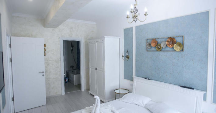 Apartamentele sunt alcatuite din 3 camere: living, 2 dormitoare cu paturi baldachin , bucatarie inchisa complet mobilata si utilata, baie dotata cu cada si o baie cu cabina de dus, terasa . Dormitoarele sunt amenajate cu cate un pat dublu matrimonial fiecare, iar living-ul detine o canapea extensibila. In living pot dormi minim 4 turisti. Toate spatiile sunt generoase, amenajate ultramodern.