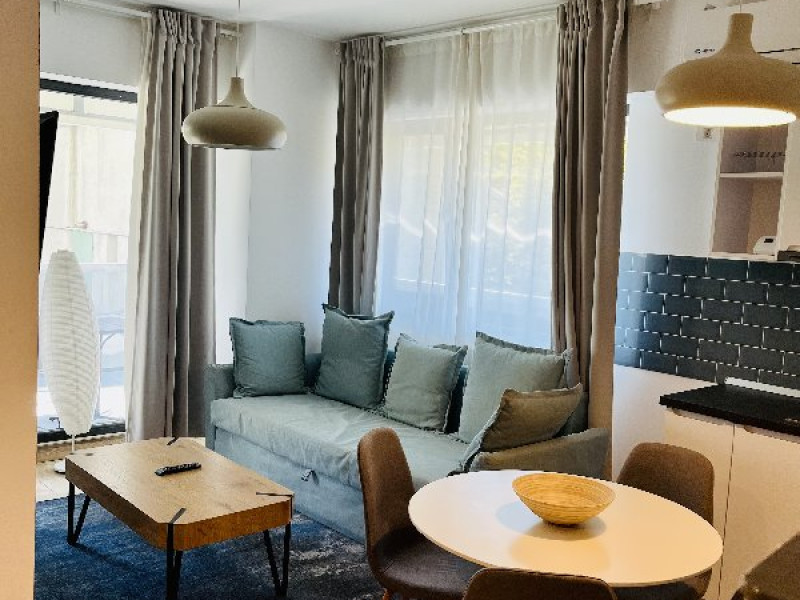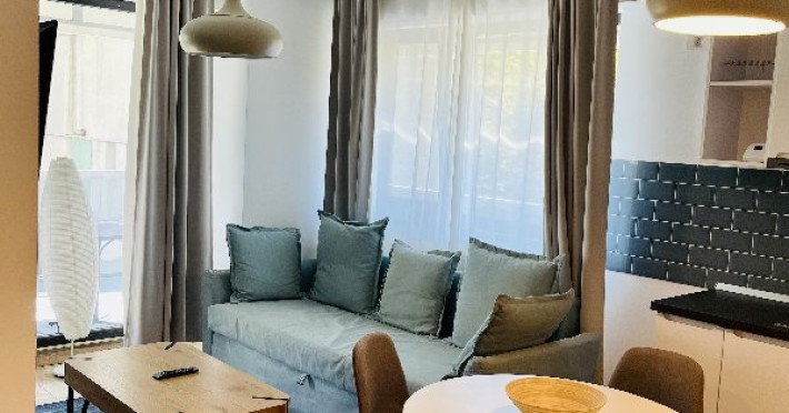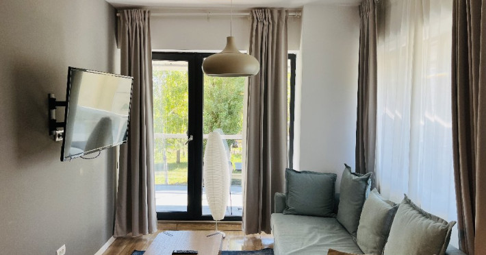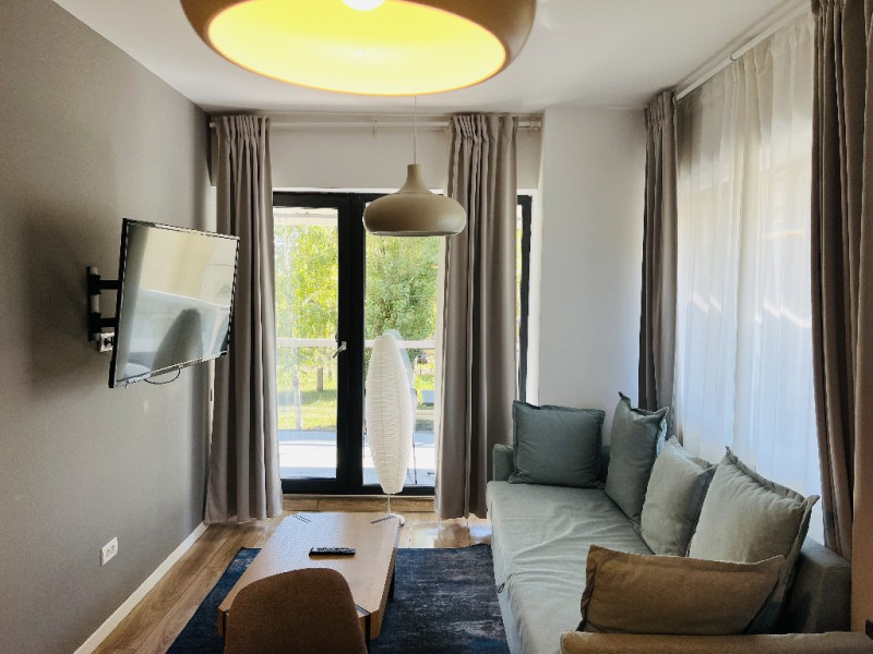 Dormitoarul are un pat dublu matrimonial 160200, iar living-ul detine o canapea extensibila. Toate spatiile sunt generoase, amenajate ultramodern. Apartamentele au vedere la lac din balcon.