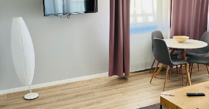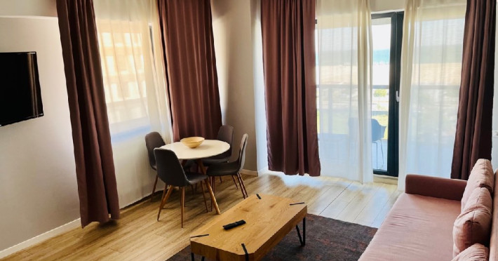 Apartamentele sunt alcatuite din 2 camere: living, si dormitoar cu pat matrimonial , bucatarie complet mobilata si utilata, baie dotata cu cabina de dus, terasa . Dormitorul are pat dublu matrimonial , iar living-ul detine o canapea extensibila. In living pot dormi minim 2 turisti. Toate spatiile sunt generoase, amenajate ultramodern.