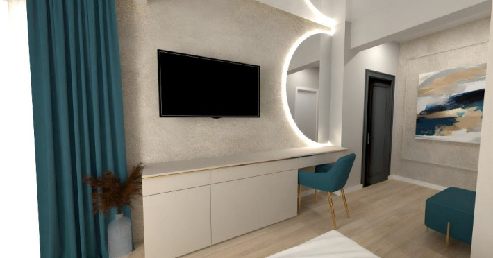 Camere elegante, atat pentru 2 persoane cu pat matrimonial cat si pentru 4 persoane cu pat si canapea extensibila.