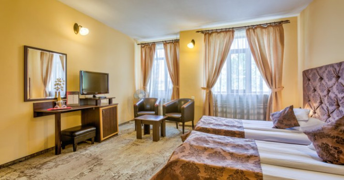 Bedamp;Breakfast Ambient is located in Brasov. This hotel is located in the very center of the city. Before going to bed, you can walk around the main landmarks of the city.Bedamp;Breakfast Ambient is located in Brasov. This hotel is located in the very center of the city. Before going to bed, you can walk around the main landmarks of the city.You can stop by the bar. There are several meal options: full board and half board. Free Wi-Fi on the territory will help you to stay on-line. If you travel by car, theres a parking zone.Also, the following services are available for guests at the hotel: a massage room and a doctor. Ski and snowboard fans will enjoy a skiing area and snowboards. The tour assistance desk of the hotel will help you book an excursion. You wont have to leave your pet at home as they are allowed for an additional cost.If you want to make your journey even more comfortable, you can order a transfer. At the guests disposal, theres also a laundry, ironing and car rental. The staff of the hotel speaks English, Spanish, Italian and German.You can stop by the bar. There are several meal options: full board and half board. Free Wi-Fi on the territory will help you to stay on-line. If you travel by car, theres a parking zone.Also, the following services are available for guests at the hotel: a massage room and a doctor. Ski and snowboard fans will enjoy a skiing area and snowboards. The tour assistance desk of the hotel will help you book an excursion. You wont have to leave your pet at home as they are allowed for an additional cost.If you want to make your journey even more comfortable, you can order a transfer. At the guests disposal, theres also a laundry, ironing and car rental. The staff of the hotel speaks English, Spanish, Italian and German.Heres what youll find in the room to have a rest after a long day: a TV and a mini-bar. The room equipment depends on its category.Heres what youll find in the room to have a rest after a long day: a TV and a mini-bar. The room equipment depends on its category..1 EUR not included 15 per room per night.EUR not included unspecified 10 per room per stayMeals for guests using an extra bed are charged separately.Datorita dinamicitatii domeniului disponibilitatea ofertelor se modifica de la un moment la altul. De aceea ofertele sunt valabile in limita locurilor disponibile. Agentia nu este responsabila pentru eventualele neconcordante care pot aparea intre informatiile privind tarifele si alte detalii din site si informatiile primite in agentie. In aceste cazuri vor avea prioritate, intotdeauna, informatiile primite in agentie.