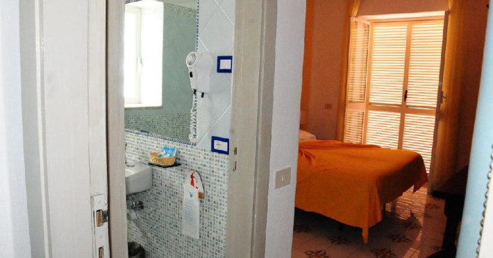 Facilitati camera:Camerele sunt spatioase si confortabile, mobilate in stil traditional mediteraneean si un rustic sarac cu ceramica Vietri si fier forjat, fiind complet echipate cu baie proprie cu dus, bideu, uscator par, aer conditionat, TV prin satelit, WiFi, cutie de valori, balcon sau terasa. De asemenea beneficiati de serviciu spalatorie contra cost.