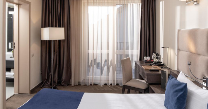 Hotelul Belfort Brasov este pozitionat in centrul BraÈovului cu acces rapid la strada pietonala principala din Brasov, strada Republicii insa in acelasi timp asigura liniÈtea prin situarea langa muntele Tampa. Facilitati: receptie deschisa non-stop, camera de bagaje, serviciu de concierge, Wi-Fi oriunde in hotel, sali de conferinte, copiator si fax, parcare, inchiriere biciclete, servicii de spalatorie, lounge bar, ziare, biblioteca, aer conditionat in intregul hotel, lift. Facilitati camere: balcon, acces gratuit Wi-Fi, aer conditionat, baie cu cada sau dus, filtru de cafea si ceainic, oglinda baie anti-aburire, seif, Tv cu 100 de programe, uscator de par, papuci de baie, articole de toaleta gratuit, camere pentru nefumatori.Datorita dinamicitatii domeniului disponibilitatea ofertelor se modifica de la un moment la altul. De aceea ofertele sunt valabile in limita locurilor disponibile. Agentia nu este responsabila pentru eventualele neconcordante care pot aparea intre informatiile privind tarifele si alte detalii din site si informatiile primite in agentie. In aceste cazuri vor avea prioritate, intotdeauna, informatiile primite in agentie.