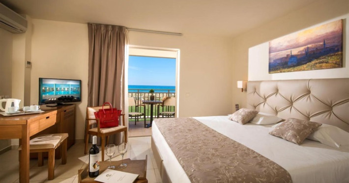 Poziționat într-un peisaj de o frumusețe atemporală, cu o panoramă spre marea Cretei, Bella Beach Hotel se află în inima coastei de nord a insulei. Cu o arhitectură extrem de selectă, unde domină nuanțele pământești, acest hotel a fost construit cu cărămidă și marmură locală. Atmosfera generală emană o liniște profundă, lăsând o impresie de durată asupra măreției și confortului său.Facilități camere