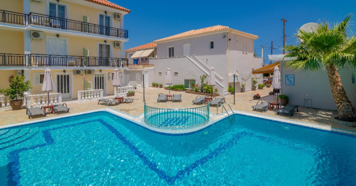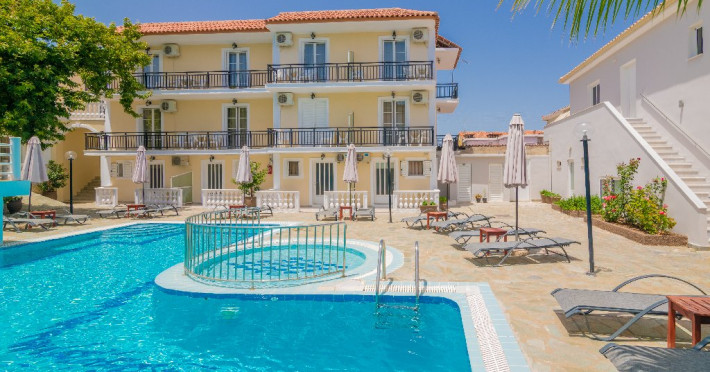 Descriere: Acesta este un hotel administrat de o familie, care ofera camere duble complet echipate care poate gazdui pana la 3 persoane. Oaspetii se pot bucura, de asemenea, de o proprietate la fata locului restaurant, doua baruri si o piscina.Localizare: Bella Dimitra este un mic hotel de 3 stele, cu o locatie pe malul marii, la doar 50 de metri de plaja din Argassi si la aproximativ 4 km de aeroportul Zakynthos.