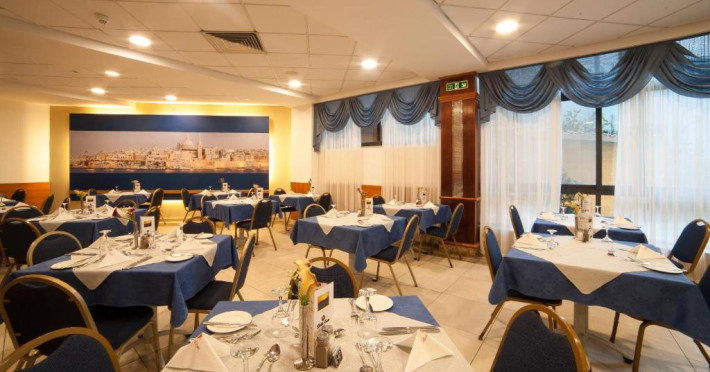 Restaurantul servește mancăruri mediteraneene in stil bufet pentru mic dejun, pranz și cină. Lounge barul Tate oferă muzică live si proiectii de film.
