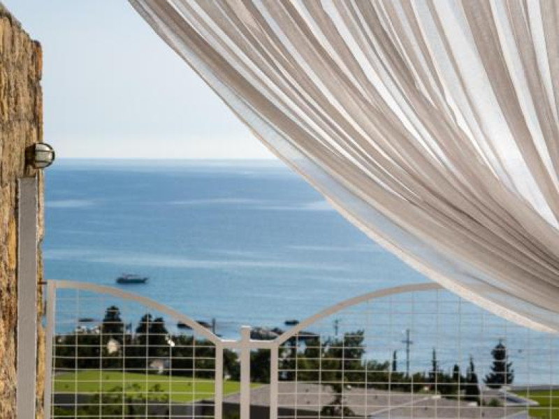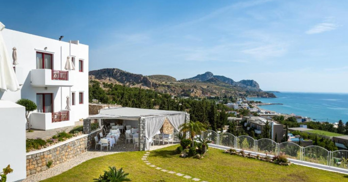 Situat pe faleza de deasupra plajei Stegna, Bella Vista Stegna se bucură de vederi panoramice la mare. Oferă cazare la malul mării, cu balcon cu vedere la Marea Egee și la munți.