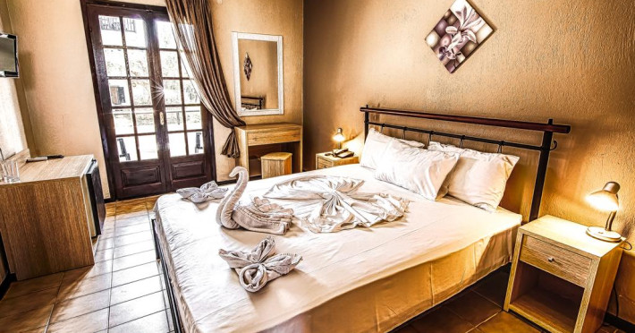 În camere există baie cu cadă sau duș ce are în dotare foehn și articole de toaletă gratuite. Fiecare cameră dispune de cană-fierbător. Unele camere au balcon cu vedere la mare sau la grădină. Camerele confortabile de la Bellagio Blue au pardoseală de gresie/ marmură, aer condiționat, Tv cu canale prin satelit și seif. Oaspeții au acces gratuit la serviciul Wi-fi în camere. Curățenia in cameră se face zilnic. Fiecare unitate de cazare are frigider. Proprietatea oferă camere pentru familie cu o suprafață mai mare și un număr mai mare de paturi față de cele standard.