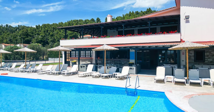In a beautiful place, surrounded by lush green pine forest and so close to magnificent azure color of the sea, you will find Bellagio Hotel, 400 meters from Fourka beach, at one of the most cosmopolitan peninsula of Halkidiki.