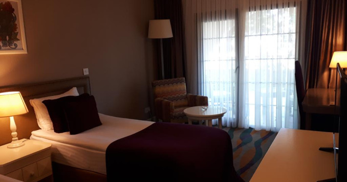 În camere există baie cu cadă sau duș ce are în dotare foehn și articole de toaletă gratuite. Unele camere au vedere la mare sau la grădină. Camerele luminoase de la Bellapais Monastery Village sunt dotate cu mochetă, Tv cu canale prin satelit și seif. Fiecare cameră dispune de minibar și cană-fierbător. Oaspeții pot solicita serviciul de room service pentru a servi masa sau diverse băuturi. Curățenia in cameră se face zilnic. Toate camerele spațioase de la Bellapais Monastery Village au zonă de relaxare cu canapea, ceea ce oferă un plus de confort. Proprietatea oferă camere pentru nefumători.