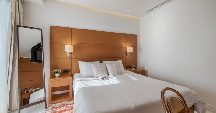 Sunt disponibile 30 camere. Fiecare cameră dispune de un aparat pentru preparare cafea sau ceai, cană-fierbător și minibar. Oaspeții pot solicita serviciul de room service pentru a servi masa sau diverse băuturi. Camerele de la Bellevue Suites sunt dotate cu aer condiționat, Tv cu canale prin satelit și seif. În camere există baie cu cadă sau duș ce are în dotare foehn și articole de toaletă gratuite. Camerele au balcon cu vedere la mare sau la oraș, unde oaspeții pot admira apusul sau răsăritul soarelui. Oaspeții au acces gratuit la serviciul Wi-fi în camere. Curățenia in cameră se face zilnic.