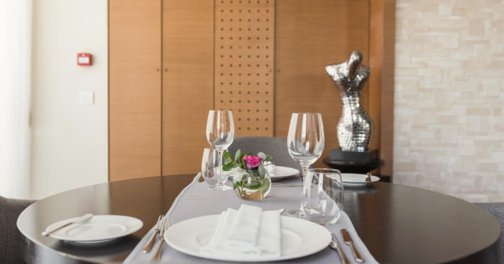 Bellevue Suites pune la dispoziția oaspeților un restaurant care servește mâncare à la carte. Preparate din bucătăria internațională așteaptă să fie degustate în fiecare zi la micul dejun, prânz și cină. Masa poate fi servită atât în interior, cît si în aer liber, pe terasă, în funcție de vreme. În cadrul proprietății există și un snack bar care servește băuturi și gustări. Pentru cei cu anumite nevoi de nutriție, Bellevue Suites oferă meniuri pentru diete speciale.