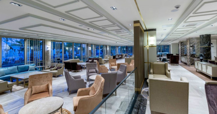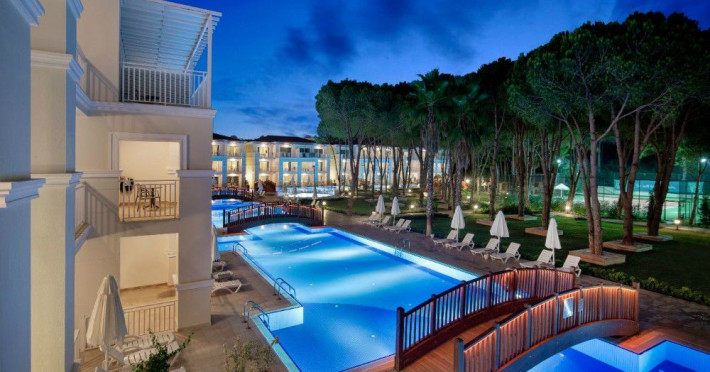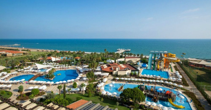 Hotelul dispune de lobby, lobby bar, piscine interioara, 5 piscine exterioare, inclusiv 2 aquapark-uri pentru copii si pentru adulti, 8 restaurante a la carte, patisserie, 10 baruri, ceainarie, sali de conferinta, magazine cu suveniruri, coafor, amfiteatru, aqua parc, serviciu medical, 4 terenuri de tenis, teren de volei, mini fotbal, tenis de masa, mini golf, sala de fitness si aerobic, sauna, hammam.