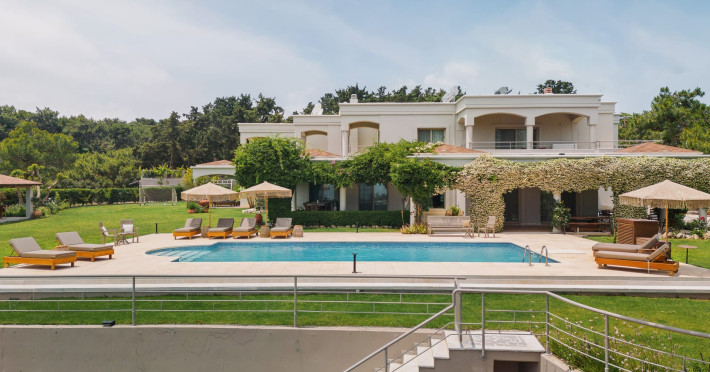 Description:Located within an isolated Old Italian estate, surrounded by 100-year-old olive trees in a protected forest area just 5 km from the medieval city center of Rhodes town, Bello Blu offers a stunning sea view holiday experience like no other. Key Features:- 7 spacious bedrooms with individual bathrooms, accommodating up to 17 guests- Private sun-kissed villa overlooking the Aegean Sea- Large swimming pool (heated/on request)- Spectacular sunrise views- Expansive indoor and outdoor areas- Stylish common areas- Full-equipped kitchen and outdoor barbecue facilities- Entertainment options including ping pong, basket, football, outdoor gym, and billiards- Ideal for VIP events, families, and large groups seeking privacySpecial Services:Experience a truly luxurious stay at Bello Blu with our bespoke services designed to elevate your Rhodes experience. From personalized concierge services to custom experiences tailored to your preferences, we ensure that your stay is hassle-free and unforgettable.Bello Blu Luxury Villa sets the standard for upscale accommodations in Rhodes, perfect for discerning travelers seeking an exceptional retreat on this enchanting island.Description:Located within an isolated Old Italian estate, surrounded by 100-year-old olive trees in a protected forest area just 5 km from the medieval city center of Rhodes town, Bello Blu offers a stunning sea view holiday experience like no other. Key Features:- 7 spacious bedrooms with individual bathrooms, accommodating up to 17 guests- Private sun-kissed villa overlooking the Aegean Sea- Large swimming pool (heated/on request)- Spectacular sunrise views- Expansive indoor and outdoor areas- Stylish common areas- Full-equipped kitchen and outdoor barbecue facilities- Entertainment options including ping pong, basket, football, outdoor gym, and billiards- Ideal for VIP events, families, and large groups seeking privacySpecial Services:Experience a truly luxurious stay at Bello Blu with our bespoke services designed to elevate your Rhodes experience. From personalized concierge services to custom experiences tailored to your preferences, we ensure that your stay is hassle-free and unforgettable.Bello Blu Luxury Villa sets the standard for upscale accommodations in Rhodes, perfect for discerning travelers seeking an exceptional retreat on this enchanting island.