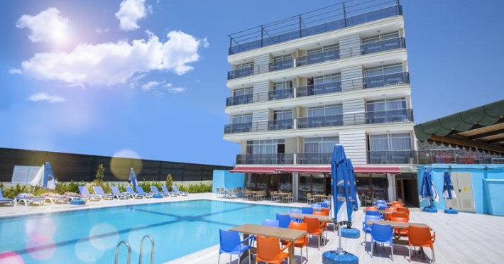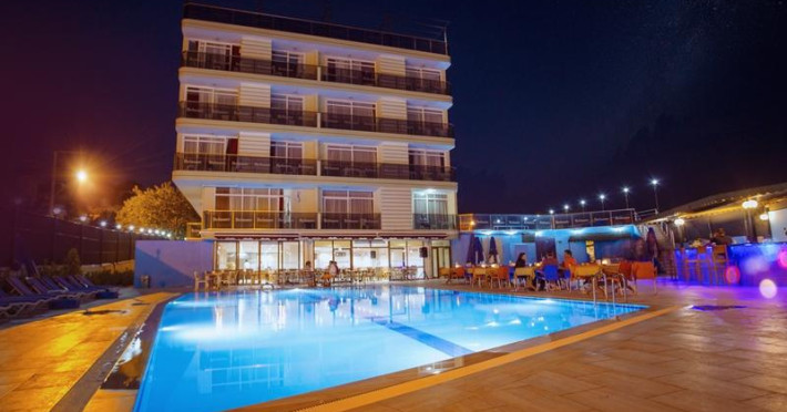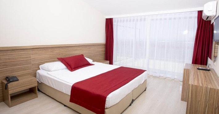 DISTANCE TO AIRPORT:80 km (IZMIR Airport) CENTRUM DISTANCE:5 km KuÅadası DISTANCE FROM THE BEACH:500 meter(Private Beach shuttle service) TOTAL ROOM:91 rooms(1 disabled rooms) ROOM DETAIL:Telephone-Sat Tv-A:C-Bath -Shower-Wc-Hair Dryer-Balcony RESTAURANT AMP; BAR:Main Restaurant-Pool Bar-Lobby Bar-Snack bar-Disco FOOD AMP; BEVERAGES : All Inclusive Breakfast-Lunch-Dinner Open Buffet-Snack and Local Alcholic-Non Alcholic Drinks. ANIMATION: Full Animation Progamme Druring Day Time and night shows. EXTRAS: Can and Bottled Drinks -Fresh juice- Turkish Coffee-ımport drinks ACTIVITIES(FREE):Table Tennis-Fitness centre-Sun Chair amp;Umbrella(ındoor 2 Outdoor Pool)-Turkish bath. ACTIVITIES(EXTRA):Daily Tours- Doctor - Laundry - Safe - Telephone - Fax - Internet - Beverages In Mini Bar - Billiard - Shopping Centre - Massage amp; Sauna For more details click hereDatorita dinamicitatii domeniului disponibilitatea ofertelor se modifica de la un moment la altul. De aceea ofertele sunt valabile in limita locurilor disponibile. Agentia nu este responsabila pentru eventualele neconcordante care pot aparea intre informatiile privind tarifele si alte detalii din site si informatiile primite in agentie. In aceste cazuri vor avea prioritate, intotdeauna, informatiile primite in agentie.