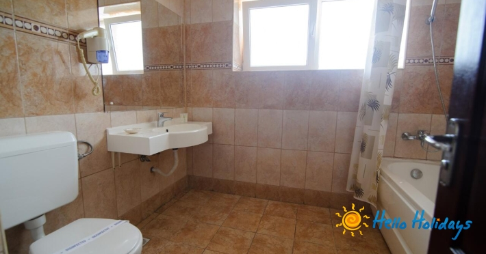 Apartamentul este compus din living cu canapea extensibila si dormitor cu pat matrimonial, baie cu cada, fara balcon si fara vedere la mare.