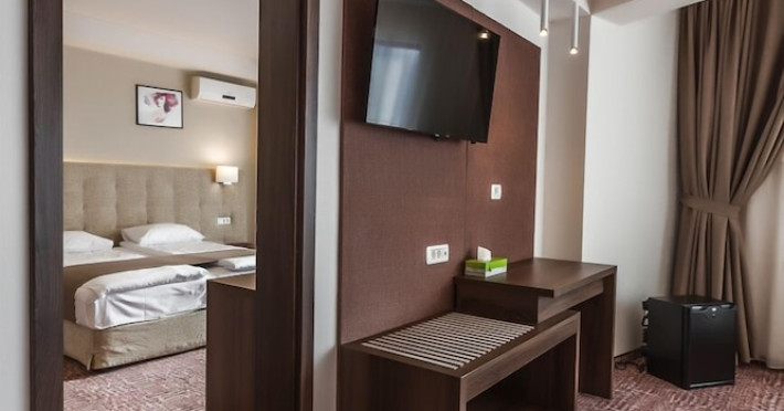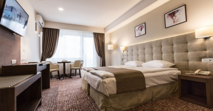 Offering free access to an outdoor pool, Hotel Belvedere is located 0.6 mi from the center of Brasov, on the road leading to Poiana Brasov, and features panoramic views of the city and the Postavaru and Bucegi Mountains. The comfortable and stylishly decorated rooms have individual air conditioning and are equipped with a computer, a flat-screen cable TV, a safety deposit box and a mini-bar. Cozy slippers and a warm bathrobe are provided in the bathrooms. Most units also feature a balcony. On the top floor there is a restaurant for up to 150 people serving delicious Romanian dishes as well as international cuisine. The Belvedere restaurant also has panoramic views over the mountains. Weddings, business meetings and team-building events can be organized here. Also, upon request, outdoors hiking and sightseeing trips, as well as ski lessons, can be organized. Shuttle transfers to Poiana Brasov and to Henri Coanda Airport are available at a surcharge.WiFi is available in all areas and is free of charge. Free private parking is available on site (reservation is not needed). Pets are not allowed. Children of all ages are allowed. People no matter the age stay for 150Â lei per person, per night when using an available extra bed. You havent added any cribs. Any type of extra bed or crib is upon request and needs to be confirmed by management. Additional fees are not calculated automatically in the total cost and will have to be paid for separately during your stay.Checkin Time: 16:00Checkin End Time: 00:00Checkout End Time: 12:00Hotel important information: Please note that on weekends there are private parties being held at the restaurant, which might lead to some noise nuisance for other guests.Datorita dinamicitatii domeniului disponibilitatea ofertelor se modifica de la un moment la altul. De aceea ofertele sunt valabile in limita locurilor disponibile. Agentia nu este responsabila pentru eventualele neconcordante care pot aparea intre informatiile privind tarifele si alte detalii din site si informatiile primite in agentie. In aceste cazuri vor avea prioritate, intotdeauna, informatiile primite in agentie.