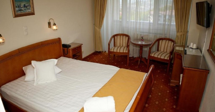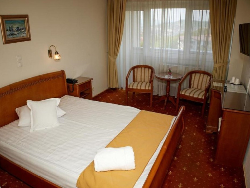 DotÄri Åi servicii Cazare 156 camere twin, matrimoniale Åi apartamente DotÄri camere: aer condiÅ£ionat, internet wireless, televizor, cablu TV, telefon, minibar, baie cu cadÄ, uscÄtor de pÄr Servicii oferite la cazare incluse în tarif: mic dejun, parcare proprie în aer liber; piscinÄ acoperitÄ, saunÄ, salÄ fitness, cardio Åi cycling în cadrul Centrului de Fitness WORLD CLASSâ. Restaurant bar: 3 saloane restaurant (Salon RoÅu, Salon Madrigal Åi Salon Cristal) cu 270 de locuri, bar de zi cu 30 locuri Èi terasÄ acoperitÄ cu 40 locuri SalÄ de conferinÅ£Ä: 2 sÄli a câte 50 de locuri în aranjament teatru (Salon Verde Åi Salon Galben), 1 salÄ cu 150 de locuri în aranjament teatru (Salon MioriÅ£a) Åi 1 salÄ cu 300 de locuri în aranjament teatru (Salonul Madrigal se poate transforma Åi în salÄ de conferinÅ£Ä); toate sÄlile sunt dotate cu: videoproiector, sonorizare, flipchart, ecran Åi acces internet wireless Alte facilitÄÅ£i contra cost: parcare subteranÄ, spÄlÄtorie ModalitÄÅ£i de platÄ: cash în LEI, card VISA, MASTERCARD, MAESTRO, AMEXDatorita dinamicitatii domeniului disponibilitatea ofertelor se modifica de la un moment la altul. De aceea ofertele sunt valabile in limita locurilor disponibile. Agentia nu este responsabila pentru eventualele neconcordante care pot aparea intre informatiile privind tarifele si alte detalii din site si informatiile primite in agentie. In aceste cazuri vor avea prioritate, intotdeauna, informatiile primite in agentie.
